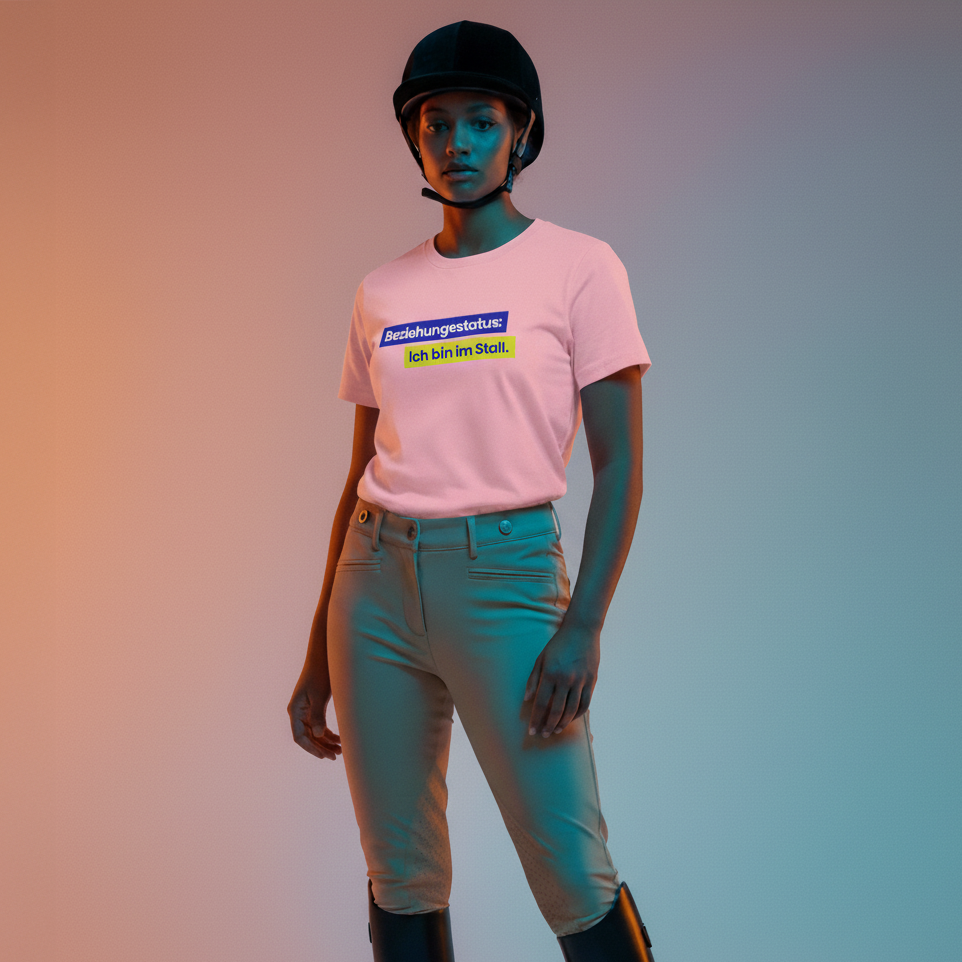 Dein Herz schlägt für den Stall? Mit dem frechen Statement „Beziehungsstatus: Ich bin im Stall“ zeigst du klar, wo deine Prioritäten liegen – beim Reiten, im Stall oder einfach im Alltag.