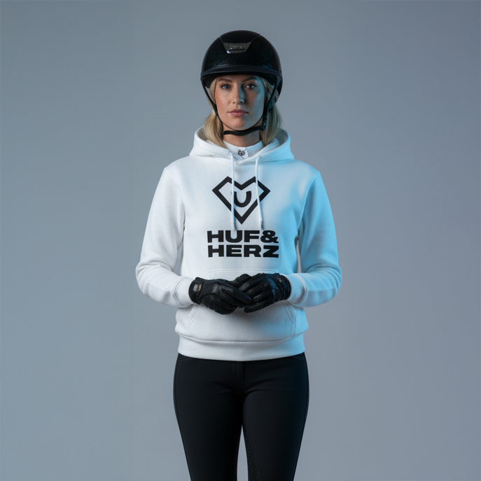 Das Herz-Motiv mit der Aufschrift „Mit Huf und Herz“ steht für Energie, Freiheit und den Mut, du selbst zu sein. Der schwere Baumwoll-Polyester-Mix sorgt für Komfort, die großzügige Kapuze und markante Details setzen klare Akzente. Perfekt für alle, die Wärme und Style gleichzeitig wollen.