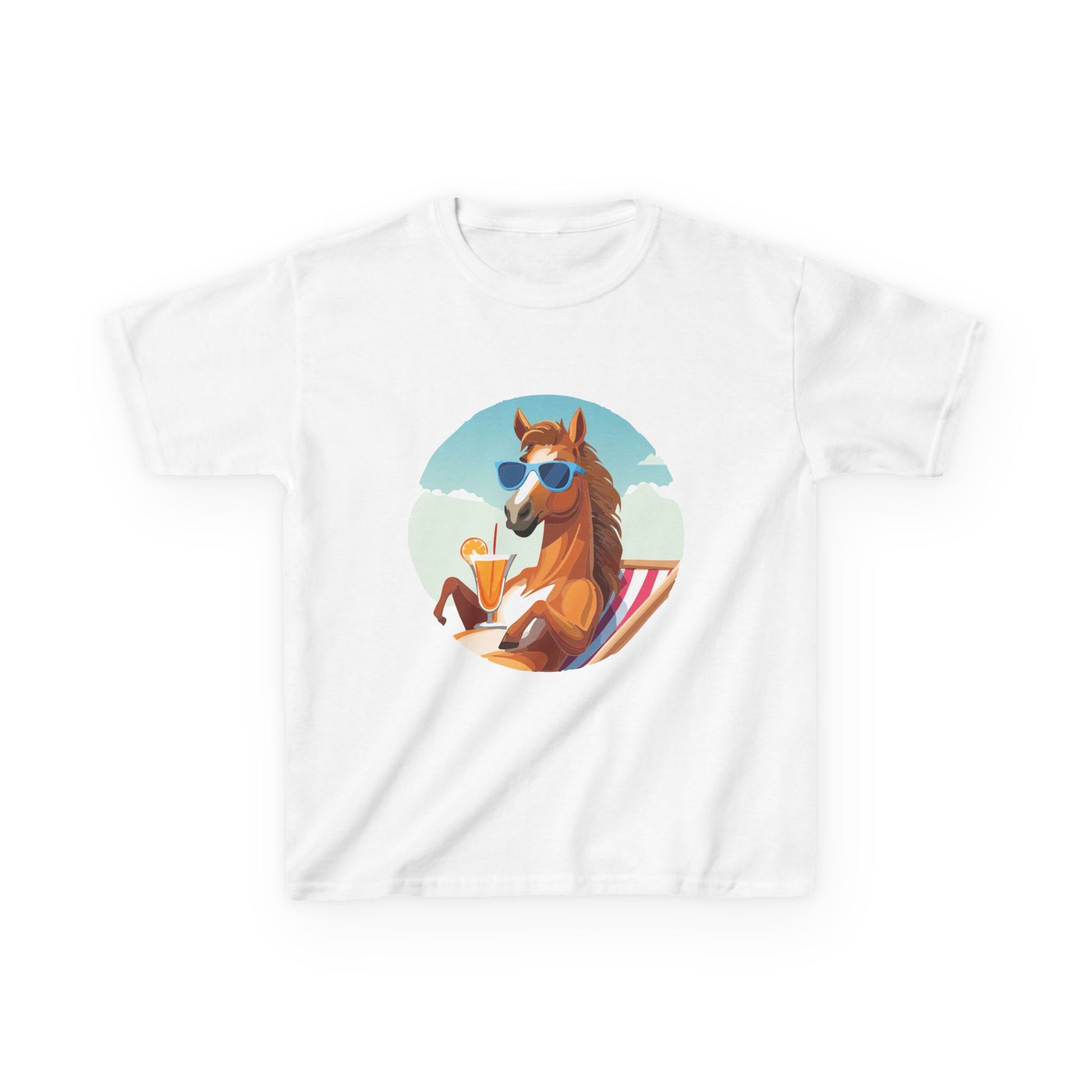 Sommerfeeling für kleine Abenteurer! Das freche Pferd mit Sonnenbrille auf dem Liegestuhl und Eis in der Hand sorgt garantiert für gute Laune.